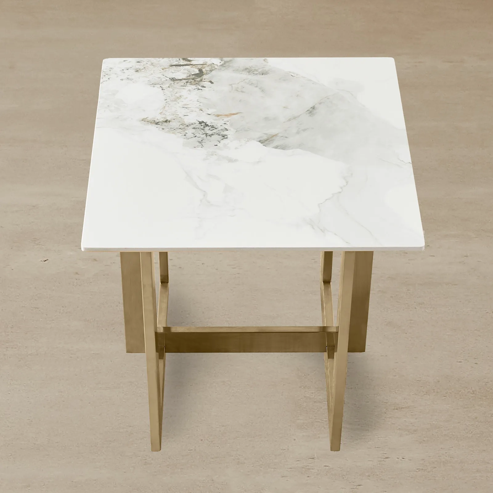 The Dianne Side Table embodies luxury with its luxurious sintered stone top. The unique grey veining on each table offers the natural beauty of marble with superior performance and timeless elegance.