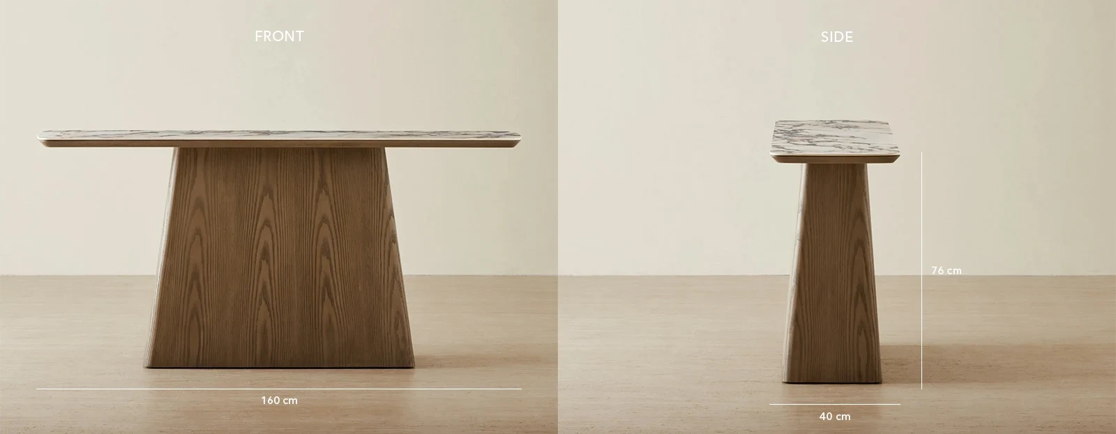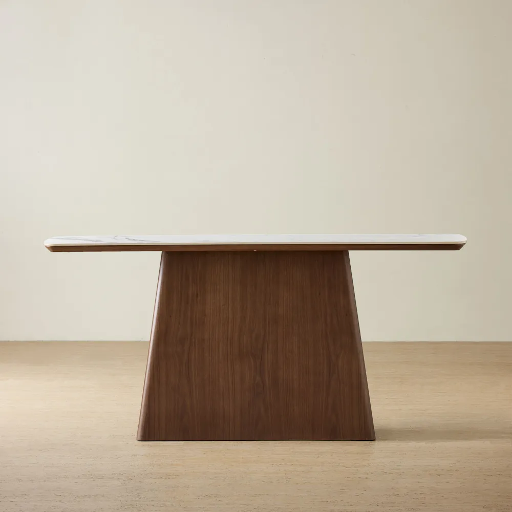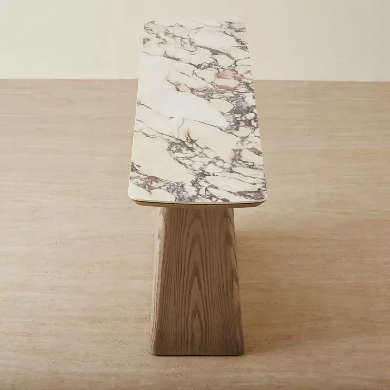 The Dunstan Console Table presents a striking rectangular form that draws the eye with its refined surface. The rich veining of the sintered stone creates an impression of timeless elegance, enhancing any space with visual depth.