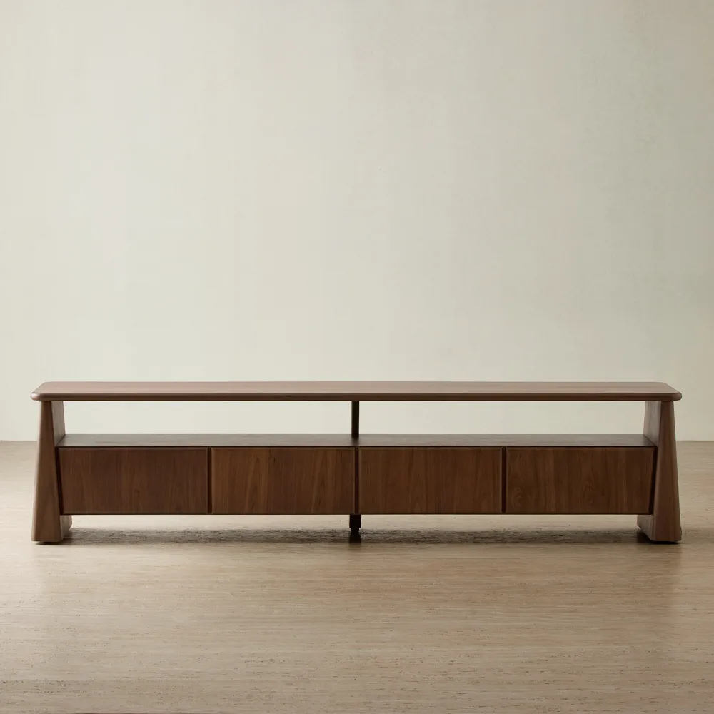The Dunstan Dining Table is defined by its smoky walnut veneer, bringing depth and richness to its long, rectangular form. With a generous 240 × 120 cm surface and softly rounded edges, it carries a grounded presence that feels both majestic and architectural.