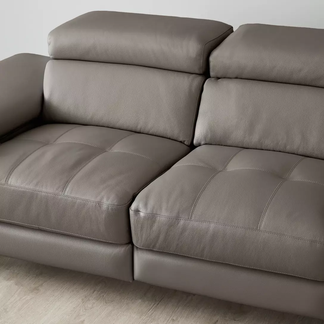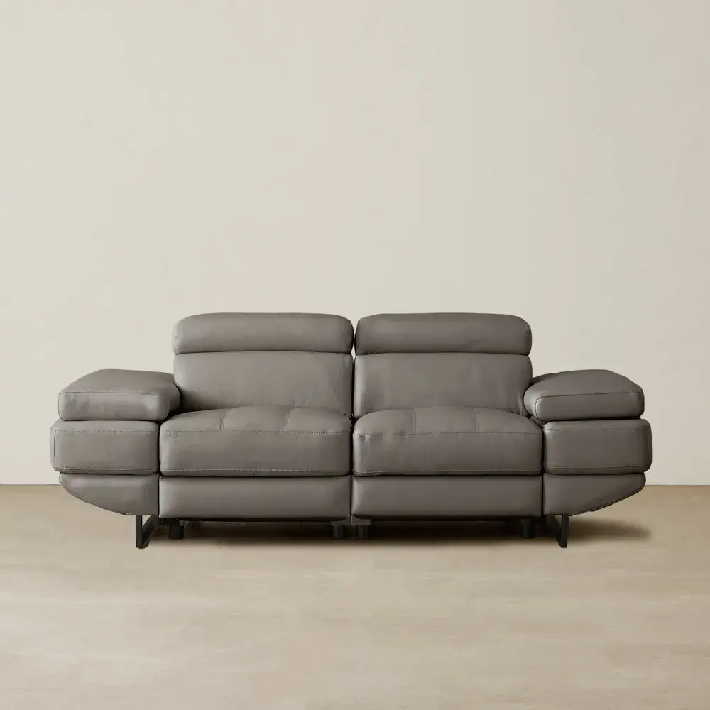 The Elena Warm Stone Grey Leather 3-Seater Electric Recliner offers the perfect blend of comfort and modern design, wrapped in soft genuine leather. With its spacious seating and electric recline, it's an ideal spot to relax and unwind with a loved one.