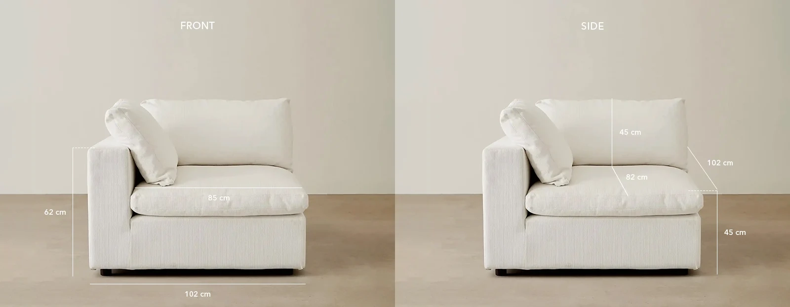 The defined arm anchors the piece, perfect for corner configurations or open modular setups. Simple, soft, and versatile—designed to suit evolving interiors.
