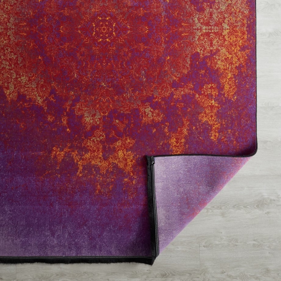 Be prepared to be captivated by the spellbinding allure of the Enchanted Floor Rug, a luxurious tapestry that serves as a gateway to the opulence of faraway, fabled eastern lands. This rug is a kaleidoscope of colors, where vibrant reds, deep blues, regal purples, and glimmers of gold come together to form a mystical pattern that tells tales of ancient myths and legends.