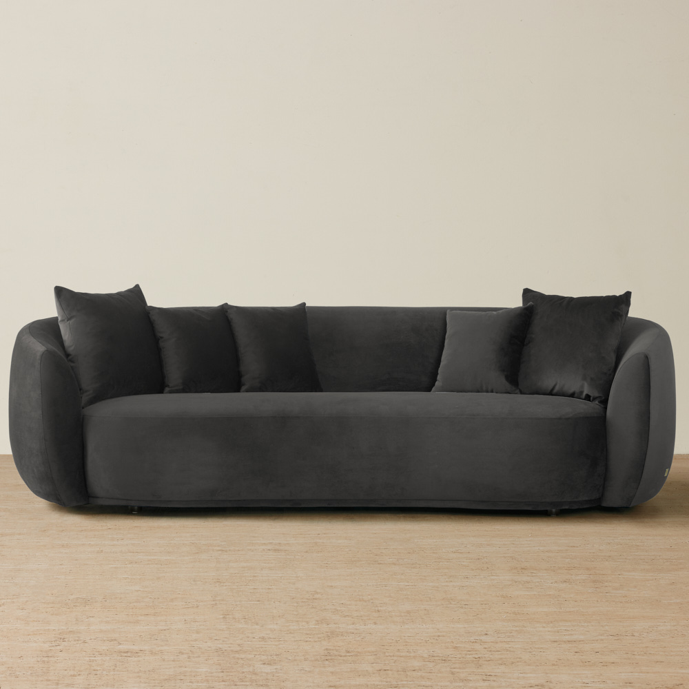 The Everett Black Boucle 3-Seater Sofa perfectly blends luxury and comfort for your living room. Draped in black boucle fabric, the Everett is a beacon of cozy elegance.