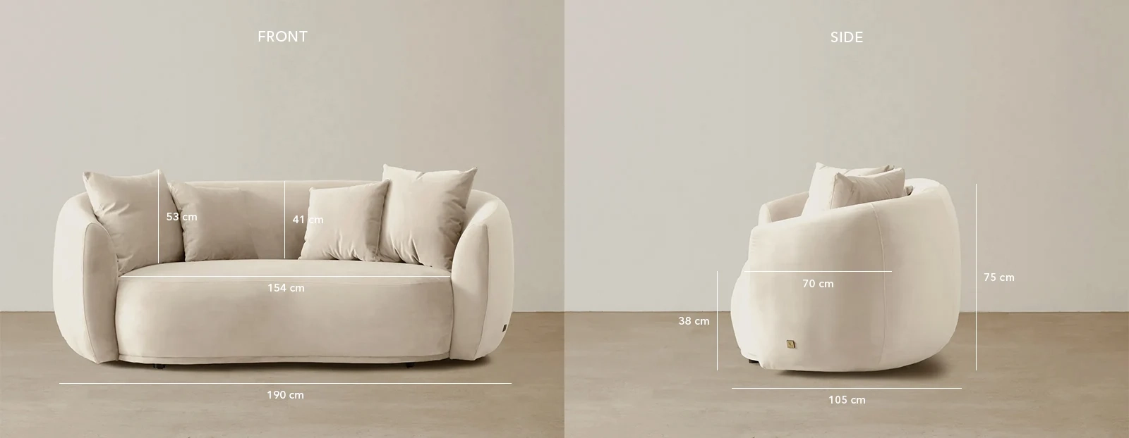 The Everett Cream Velvet 2-Seater Sofa perfectly blends luxury and comfort for your living room. Draped in Cream velvet fabric, the Everett is a beacon of cozy elegance.