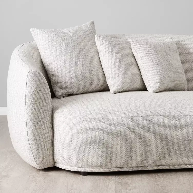 The Everett Dove Grey Woven 3-Seater Sofa perfectly blends luxury and comfort for your living room. Draped in Dove Grey Woven fabric, its cushioned seat is a beacon of cozy elegance.