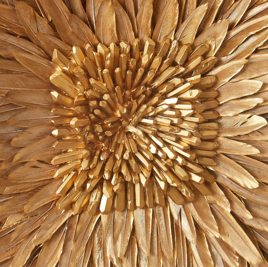 The Feather Shadow Box with Golden Frame is an exquisite decorative piece that transcends conventional wall art. This unique creation features an artful assembly of feathers and stones, meticulously arranged to resemble a flower in the midst of a graceful bloom.