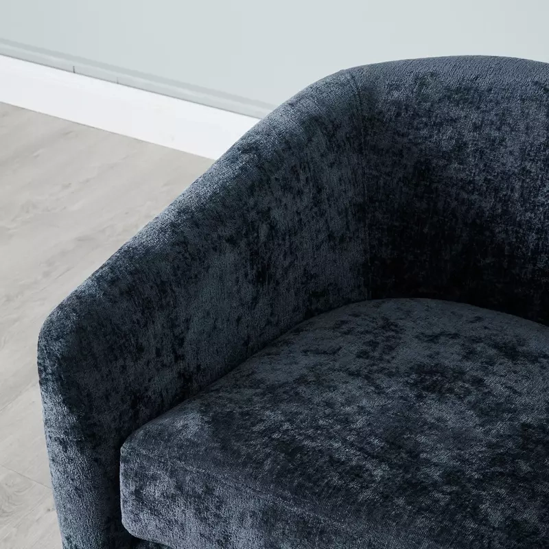 The Finn Navy Velvet Occasional Chair adds style to your home with its curved back and angled armrests inspired by the classic Barrel Chair design. Upholstered in soft navy velvet with dense foam cushioning, it offers both comfort and sophistication.