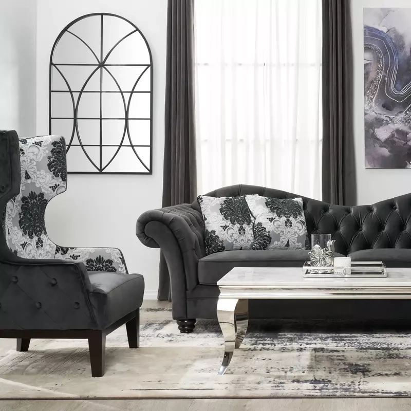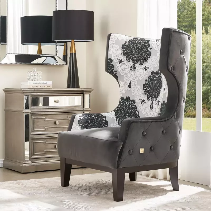 Florence II Charcoal Velvet with Floral Pattern Occasional Chair