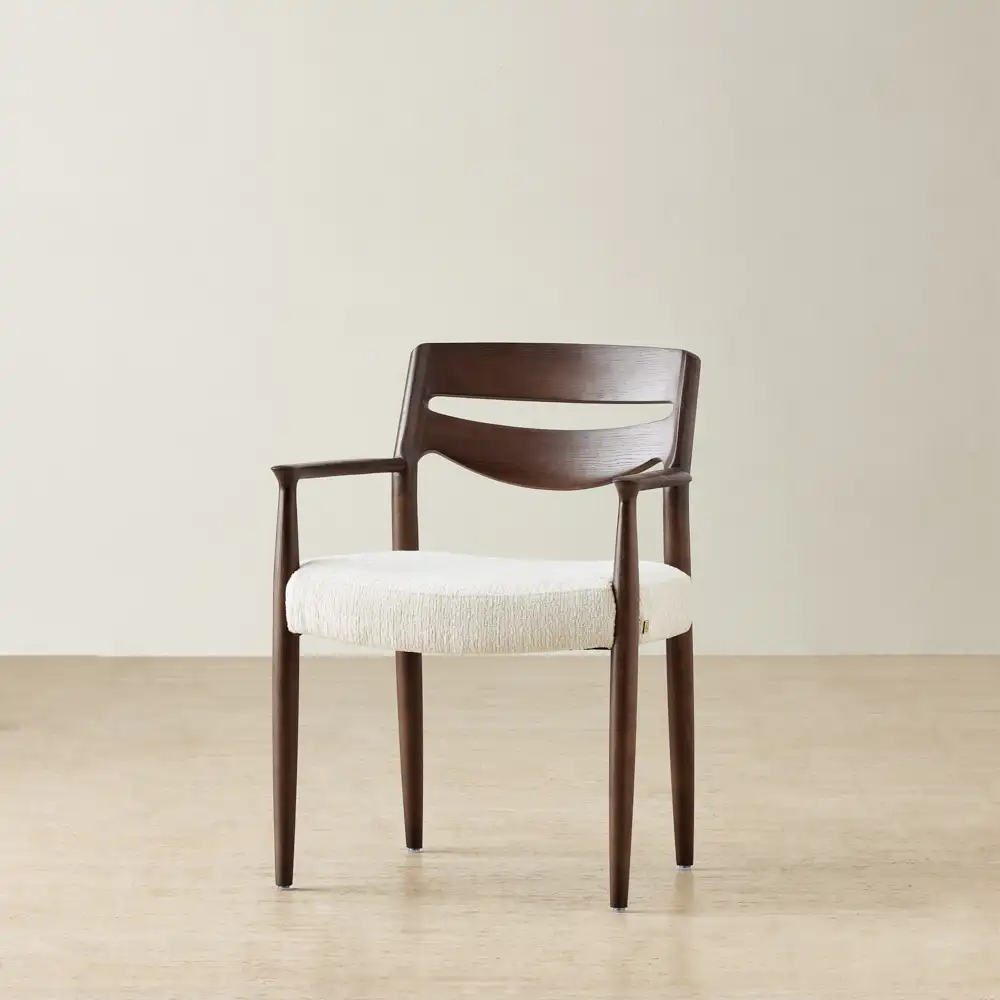The softly padded seat offers comfortable support while maintaining a smooth, tailored profile. Designed for lingering meals and polished settings.