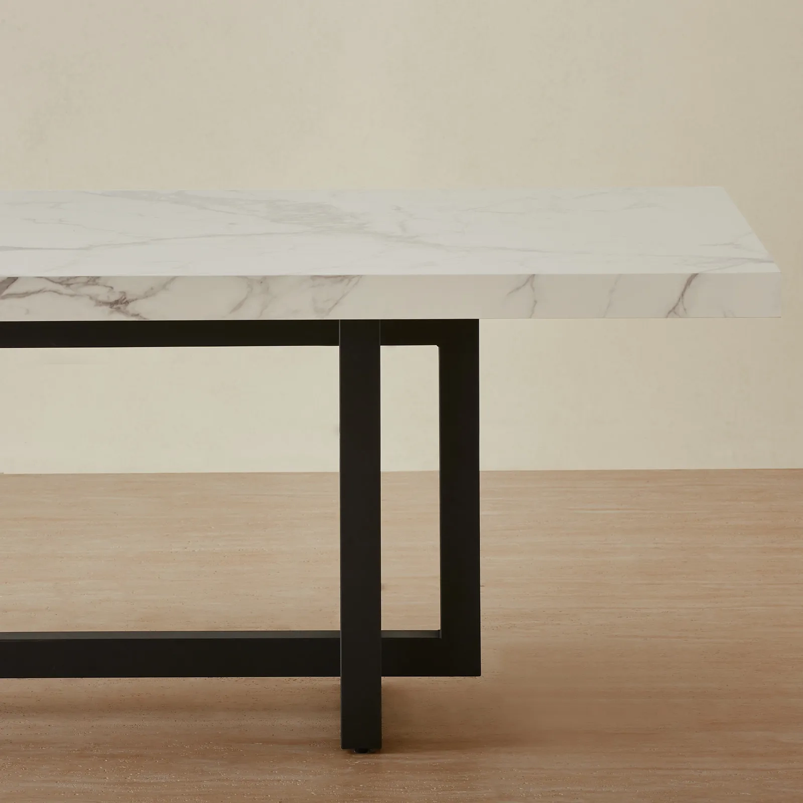 The sleek black metal base provides a sturdy foundation, while the minimalist geometric design adds a contemporary edge. Perfect for hosting family gatherings or elegant dinners, the Grayson dining table brings both style and function to your dining space.
