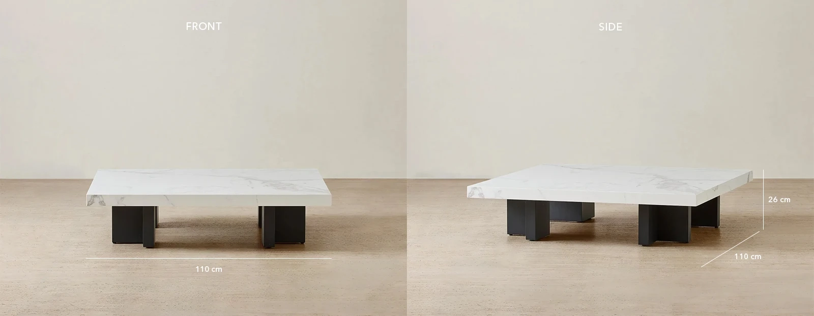 The Grayson Coffee Table introduces refined geometry to contemporary interiors. Its Statuario white sintered stone top features delicate veining and a soft matte finish, offering a timeless expression of modern elegance.