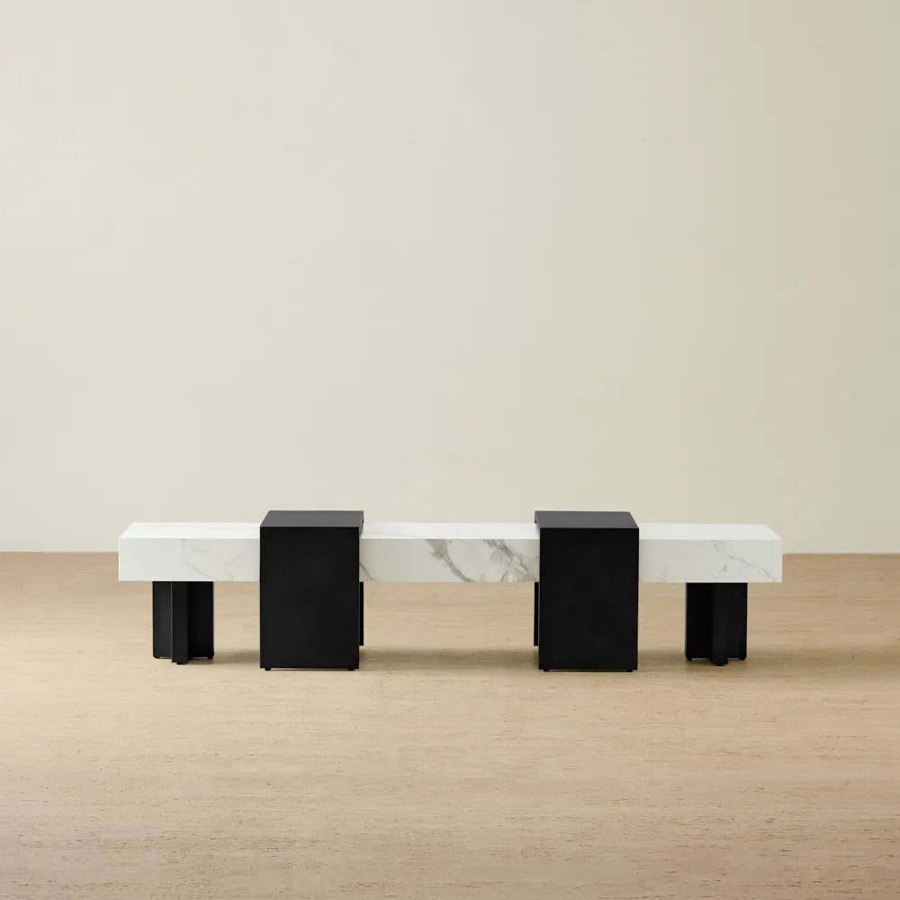 Its clean rectangular form rests on sculptural black legs, providing a bold yet versatile foundation. With its balanced proportions and elegant detailing, this table serves as a striking focal point in any dining space.