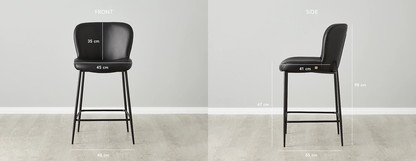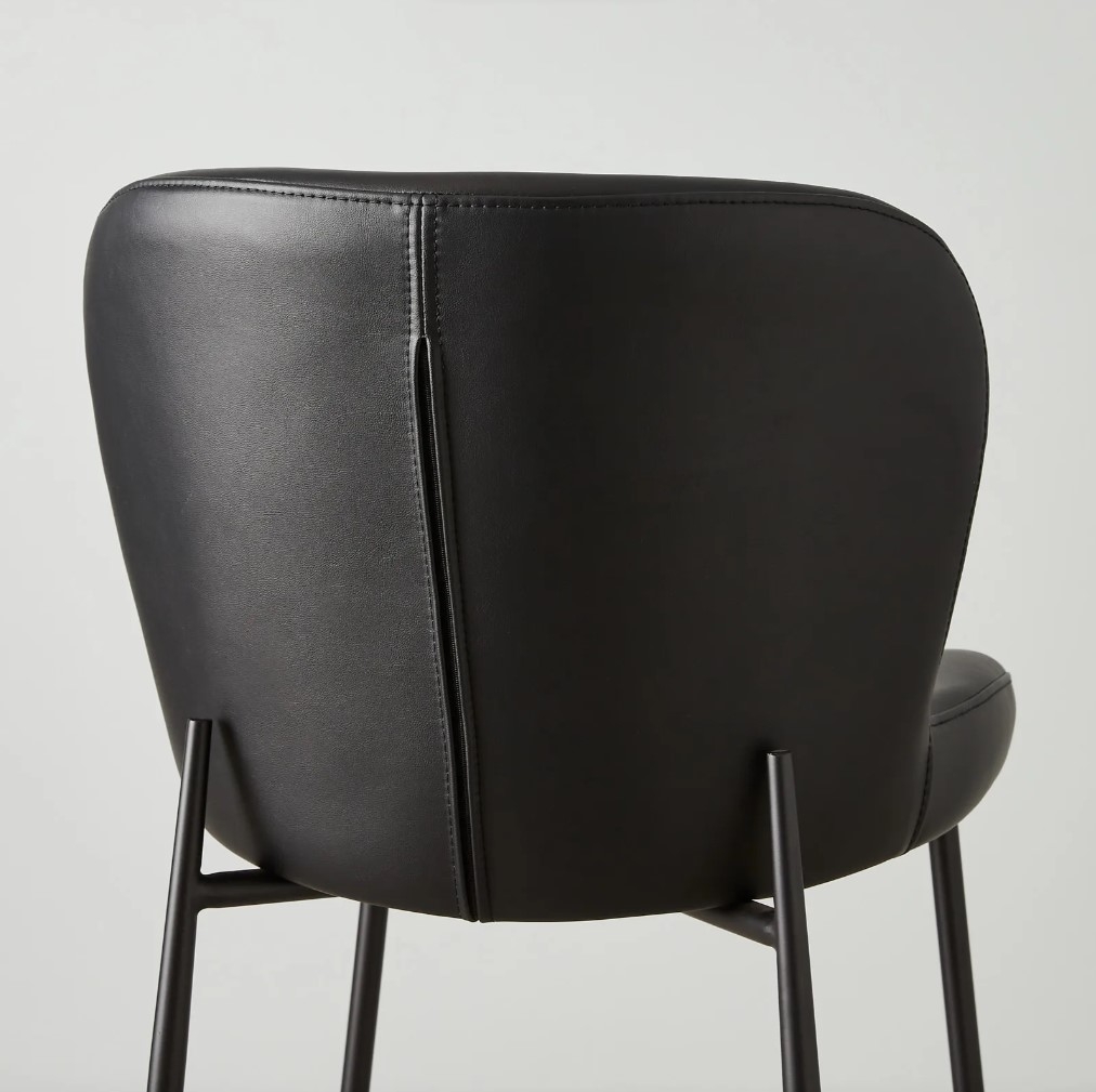 Rest comfortably as you enjoy meals and conversations with the Hailey Black Vegan Leather Counter Stool. It boasts a highly stylish streamlined look that adds effortless sophistication to your dining area. Its overall design echoes minimalism as it favours simplicity over excess to create a note-worthy piece. Lounge comfortably on its gorgeously curved seat, padded with dense foam. Covering the entirety of the Haileys seat with its lustrous shine is an offering of high-quality Vegan Leather.