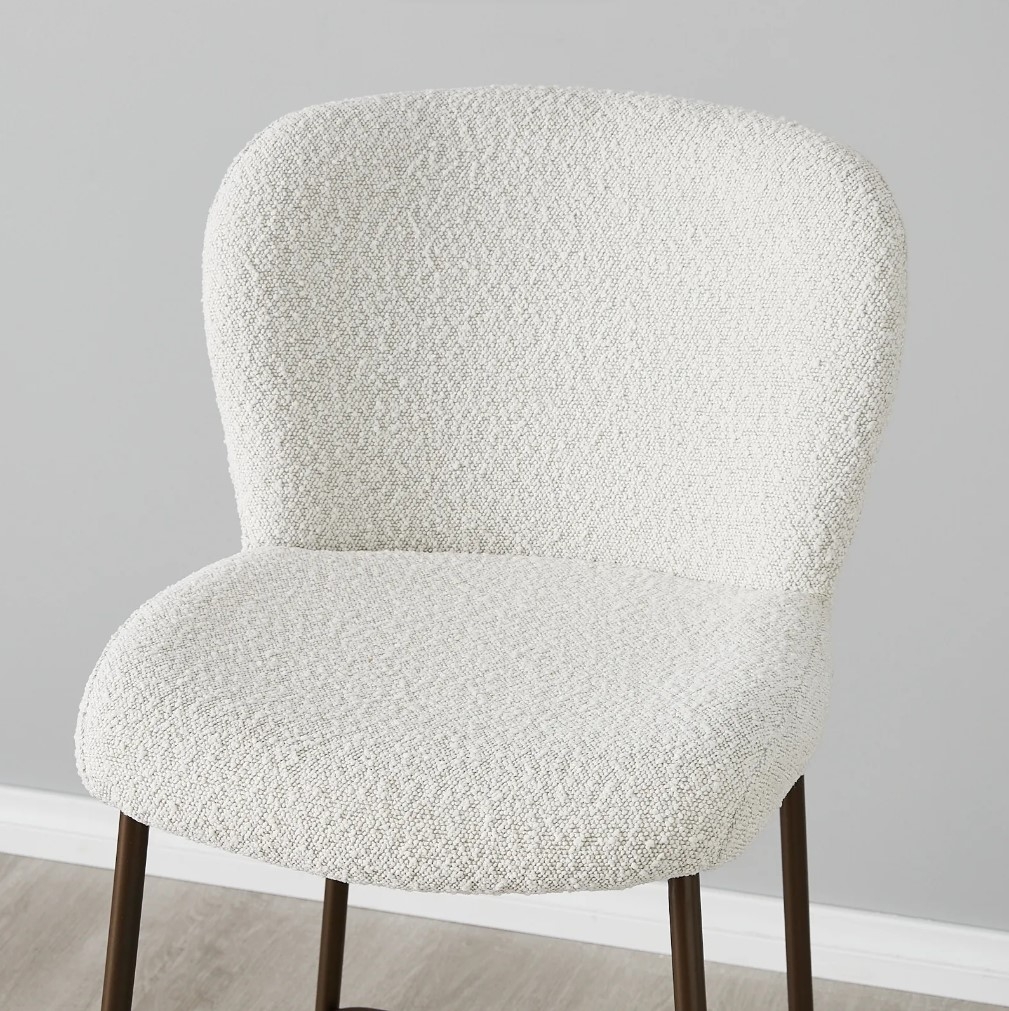 Rest comfortably as you enjoy meals and conversations with the Hailey Snow White Boucle Counter Stool. It boasts a highly stylish streamlined look that adds effortless sophistication to your dining area. Its overall design echoes minimalism as it favours simplicity over excess to create a note-worthy piece. Lounge comfortably on its gorgeously curved seat, padded with dense foam. Covering the entirety of the Haileys seat with its elegance is an offering of Dream-like Boucle Fabric.