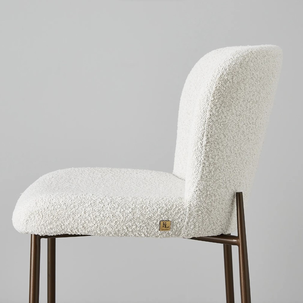 This Boucle Fabric comes in an elegant Snow White shade, which adds to the Hailey's sophistication. Four gorgeously crafted metal legs seamlessly flow from the seat and are joined below the base to provide a helpful footrest for lengthy conversations. These legs come in a bronze shade that accentuates their simplicity and beauty. The Hailey works best in a pair and comes in a wide variety of colours.
