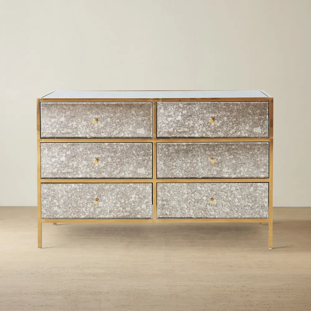 The Helena Antique Glass Bedside Table offers both style and practicality. With its three spacious drawers, it provides ample storage space to keep your essentials organized and within reach. Whether it's books, accessories, or personal items, this bedside table ensures that your bedroom remains clutter-free and aesthetically pleasing. The elegant design and versatile colour scheme make it a perfect complement to various bedroom styles, allowing you to create a cohesive and visually appealing space.