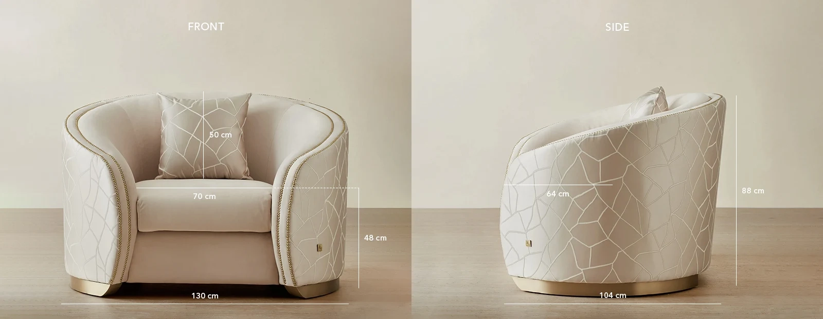 It features a luxurious design with golden bead detailing along its outline, a shell-like pattern on the back, and a gold-colored steel frame for elegant support.