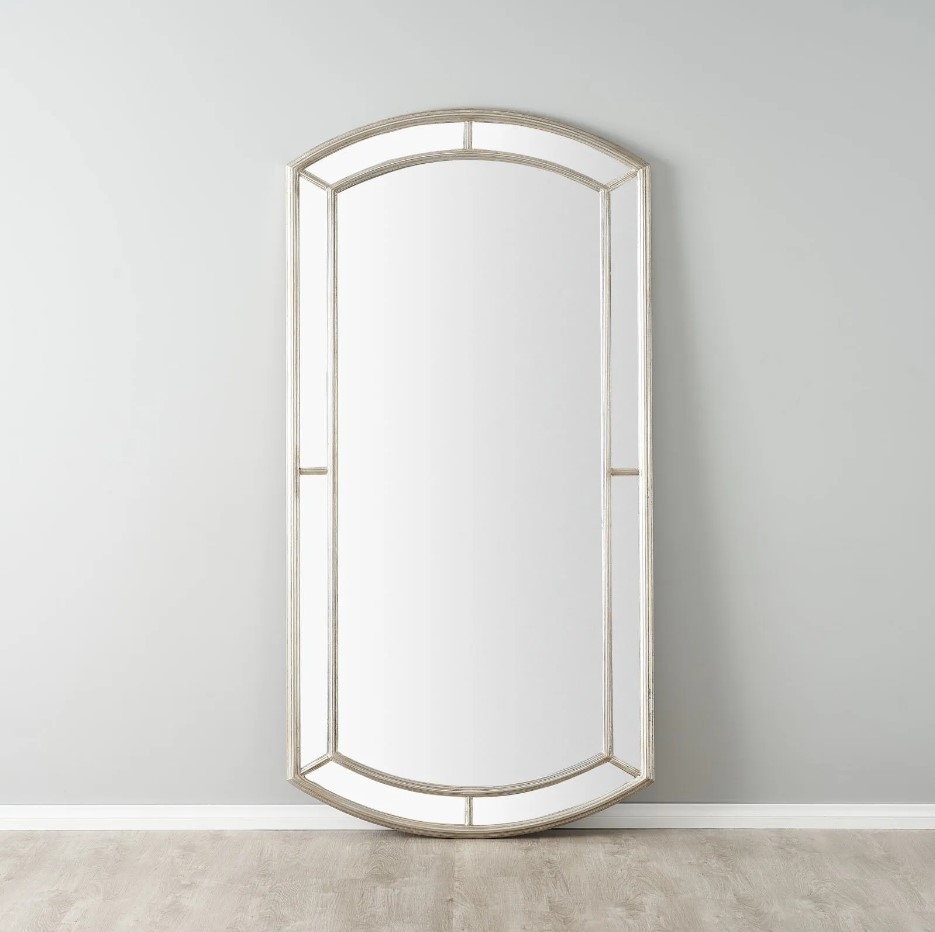 With its arch shape and crisp geometric lines, this mirror is an exemplary piece that can anchor a room or act as an elegant complement to other decor elements. The structure is sturdy yet exudes a delicate charm, reflecting a blend of strength and grace. This mirror's stature and reflective quality can make a space feel more expansive, inviting light into every corner and creating an illusion of depth.