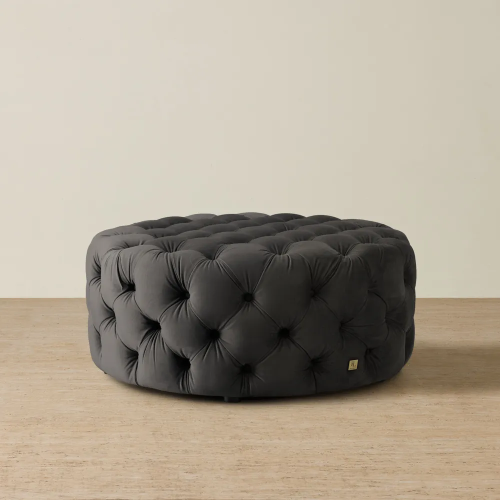 The Kelly Black Velvet Ottoman is notable for its intriguing design matched with a super comfortable and plush look. Gorgeous Black-coloured velvet encapsulates its sturdy wooden frame and prominently features button tufting on all sides. Each tuft represents an invitation to relax on the Kelly Ottoman's comfortable seat and bask in its modern glow. The Kelly Ottoman goes beyond stylish aesthetics and provides a comfortable seating option.
