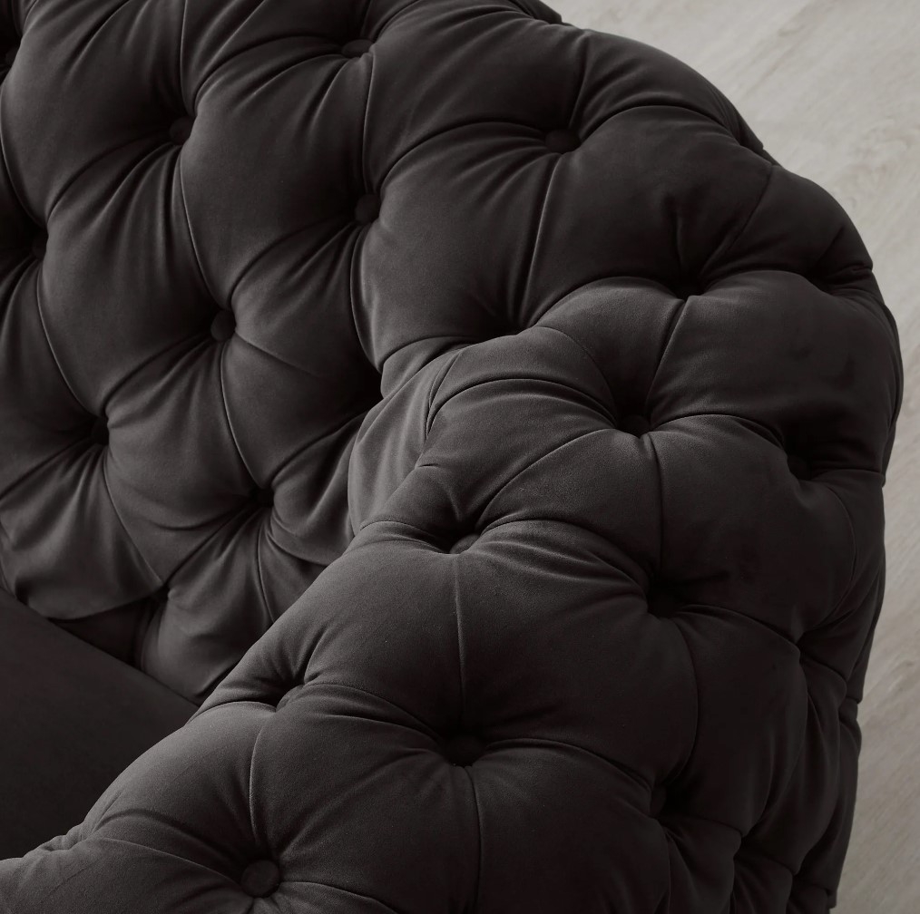 The Kelly Charcoal Velvet 3-Seater Sofa offers an Art Deco twist on the classic Chesterfield design. It highlights its elegance with its tufted sections, draped in velvet fabric in a luxe Charcoal shade.