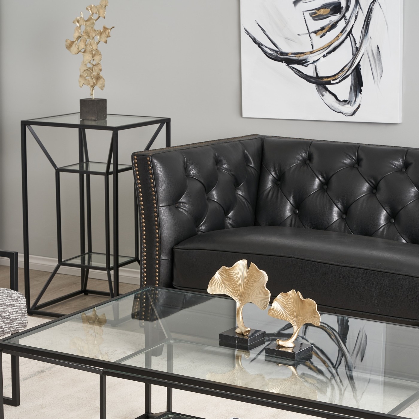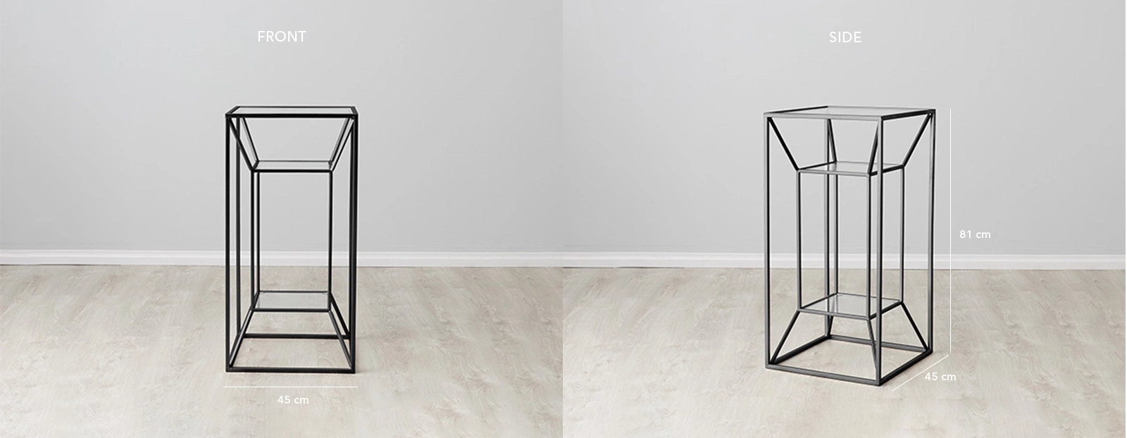 A distinct air of elegance permeates throughout our beautiful Black Laila Glass Side Table. It aims to dazzle you with its artistically designed frame that's both a nod to classic looks and modern minimalism. The Laila Side Table presents a masterfully crafted vertical geometric frame with an open design that allows light and the beauty of your other pieces to shine through. The Laila plays with light and space to add intrigue to your home.