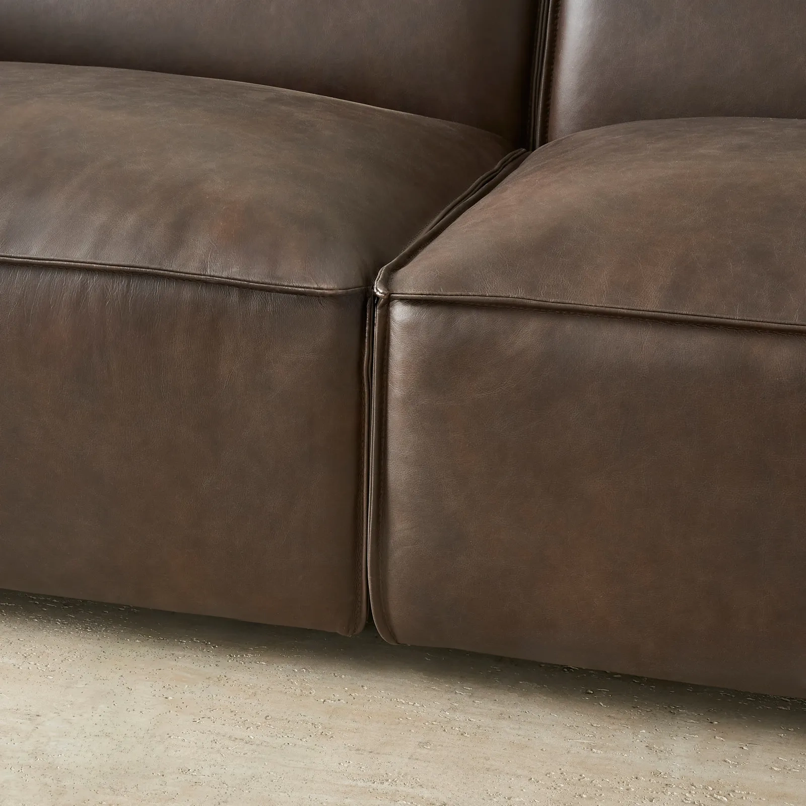 The Lainey is modular living, streamlined. Crafted with genuine medium tan leather, the Lainey brings clean lines and thoughtful flexibility to any space.