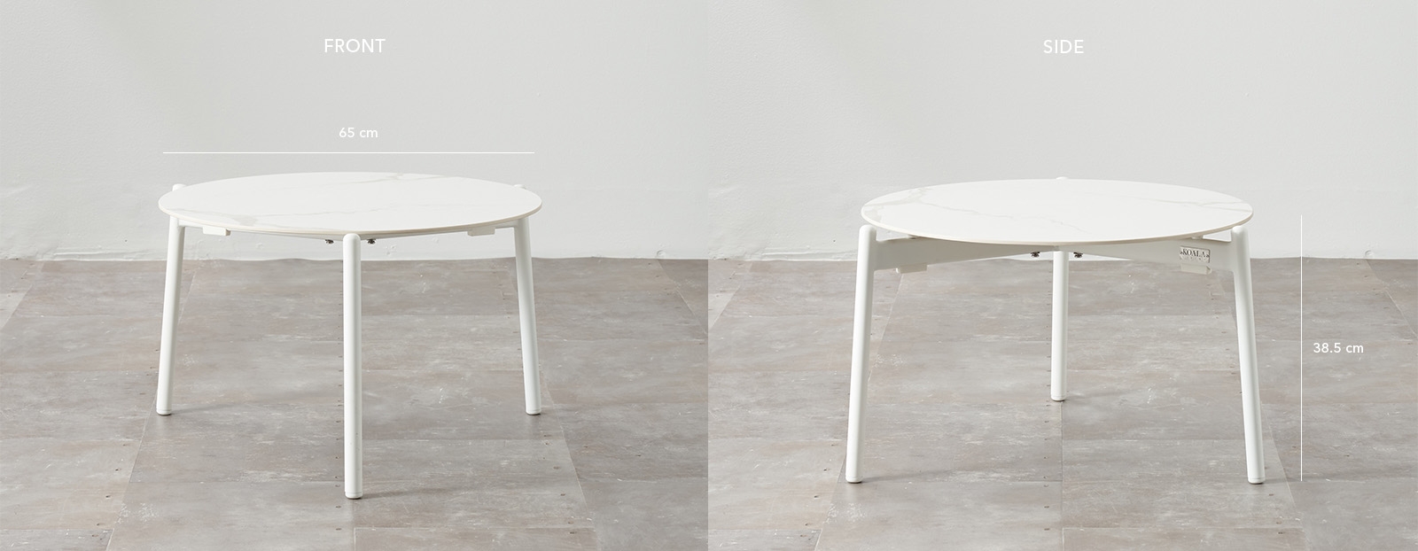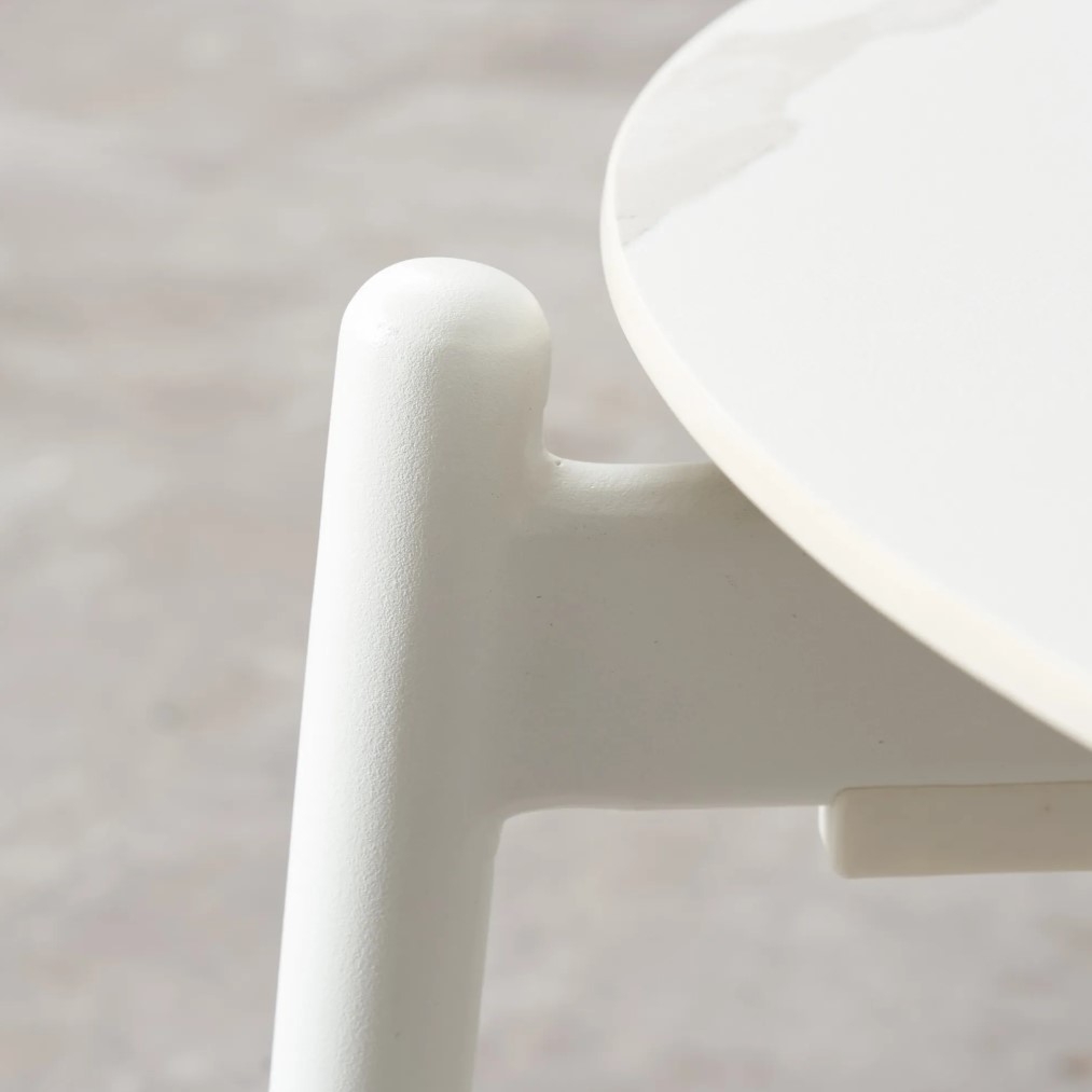 The Sintered stone used is resistant to the Sun's notorious UV rays and cold temperatures, ensuring that you're ready to enjoy the Lana for all seasons. The Lana is easy to clean, and its durability makes it an outdoor staple for years to come. A standout and highly durable aluminium frame provide ample support with its three stylish legs; Perfectly designed to give you and your friends more room to relax. The Aluminum frame's white colours along with the white sintered stone table-top, make the Lana Outdoor Side table an elegantly functional offering to your collection.
