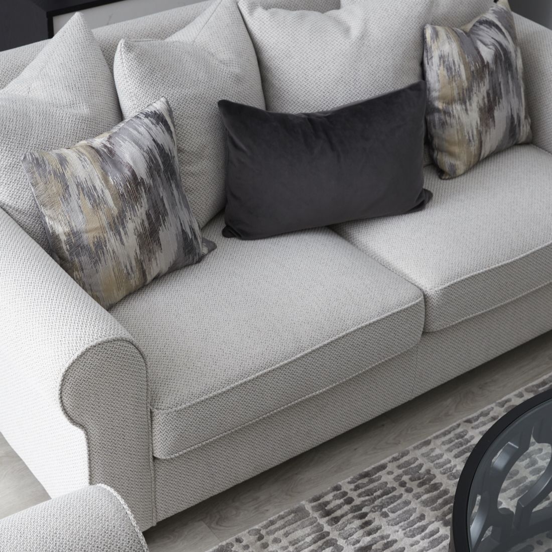 Paying homage to classics, the Laurie 3-Seater Sofa's frame is crafted in a traditional style that echoes the established Lawson design. It is draped in ash grey woven fabric, adding to its classic appeal.