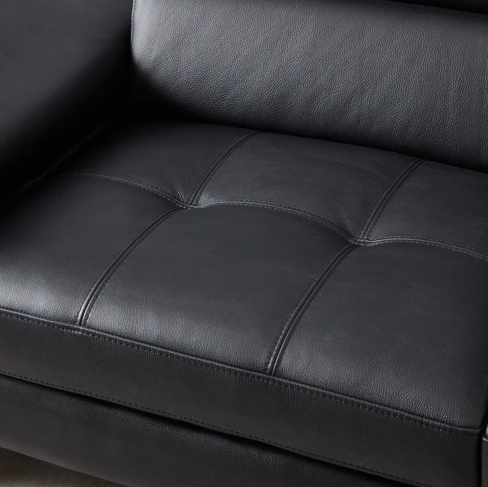 The Lennox Black Leather 2-Seater Sofa brings modern luxury to your living room with its comfortable seats and contemporary features, highlighted by its genuine leather upholstery.