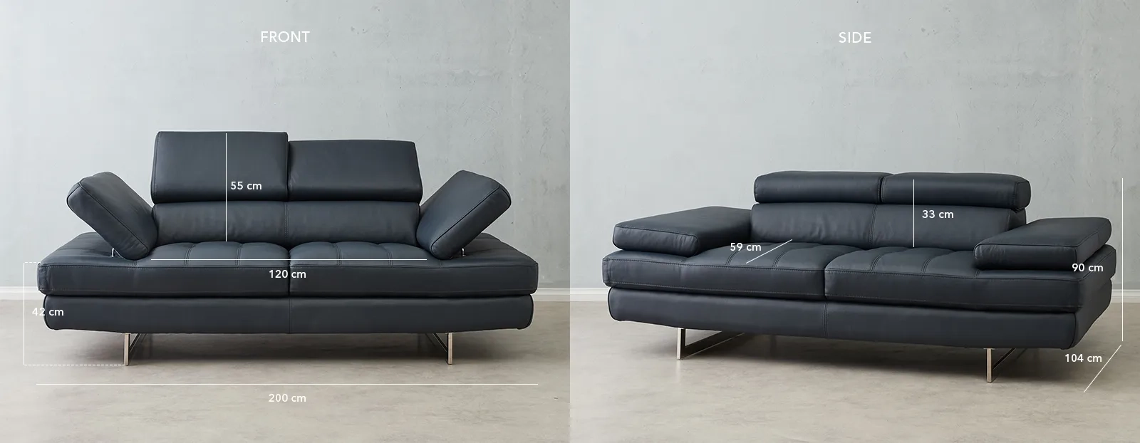 The Lennox Night Blue Leather 2-Seater Sofa brings modern luxury to your living room with its comfortable seats and contemporary features, highlighted by its genuine leather upholstery.