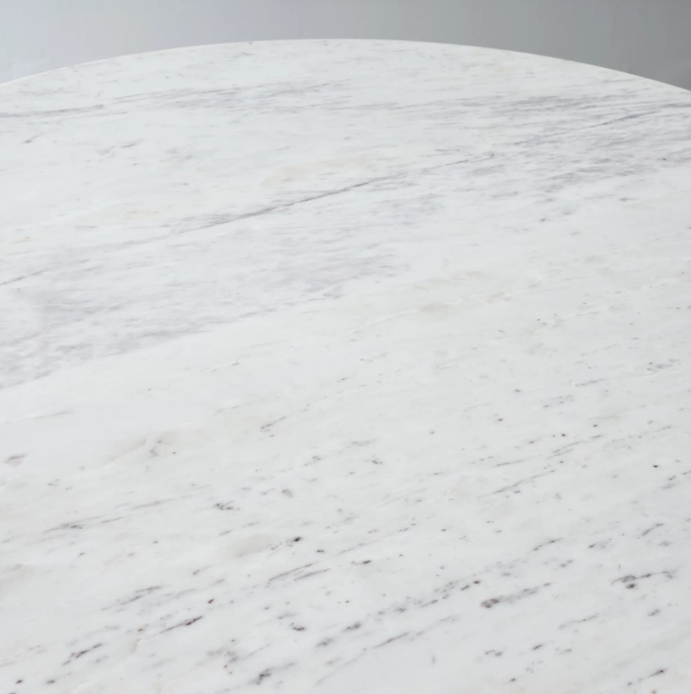 Elevate your dining and celebratory experiences with the breathtaking Lillian Natural White Marble Dining Table. This magnificent piece seamlessly blends elements of modern and mid-century styles, creating a timeless and sophisticated aesthetic that will captivate your friends and family. The Lillian features a spacious tabletop crafted from a cut of exquisite white marble. The luxurious marble features dashing grey veins that add a touch of mystique and intrigue to its overall allure.
