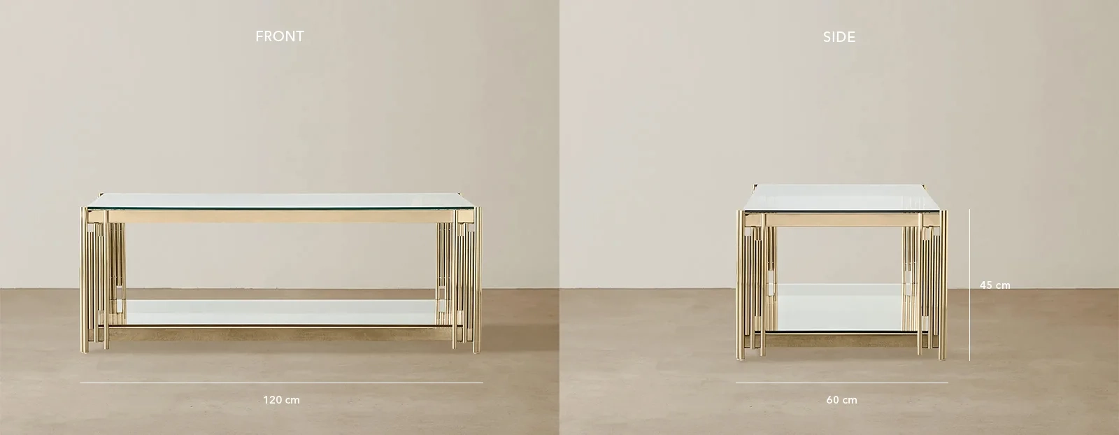 Add Champagne Gold lustre to your living area with the Lindsay Coffee Table, featuring a finely detailed stainless-steel frame. Its spacious tempered glass top offers ample space for decorations, books, and more.