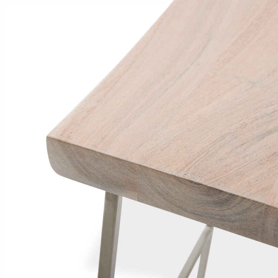 Supporting this exquisite wooden seat is a sturdy steel frame, designed for durability and stability. The frame's sleek lines add a modern industrial touch to the stool, while its clever design offers footrests at both the front and back. This feature ensures that regardless of how you sit, you have a comfortable spot to rest your feet, enhancing the overall seating experience.
