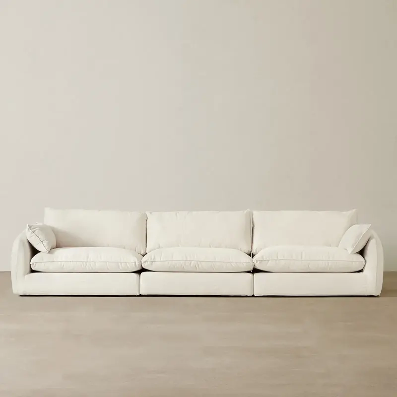 Introducing the Macie Sofa, a masterpiece by Emily McAlister that defies the conventional exuberant Koala Living sofas, opting instead for an ultra-comfortable design. This thoughtfully crafted piece beckons you to curl up and immerse yourself in its luxurious embrace, drawing inspiration from the carefree ambiance of vacation-style living. The soft, sunken frame of the Macie Sofa mirrors the tranquil hues of a pristine sandy beach. Its inviting feel, reminiscent of linen, is heightened by the opulence of Chiffon fabric, ensuring both comfort and durability. Emily's artistic touch is evident in the graceful curves that define the design, allowing the shape to seamlessly flow around the entire frame. A notable addition to this design is the incorporation of stain-resistant fabric, a highly sought-after feature. This innovation not only caters to the practical needs of families and friends but also ensures the longevity of the piece. The Macie Sofa stands as a testament to the harmonious blend of quality design and functionality, all whilst remaining as soft as a… feather.