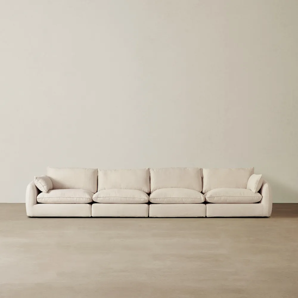 The Macie Lite 4-Seater Sofa in Chiffon White offers a clean, modular design built for comfort and versatility. Its deep cushions create a relaxed feel suited for everyday use.