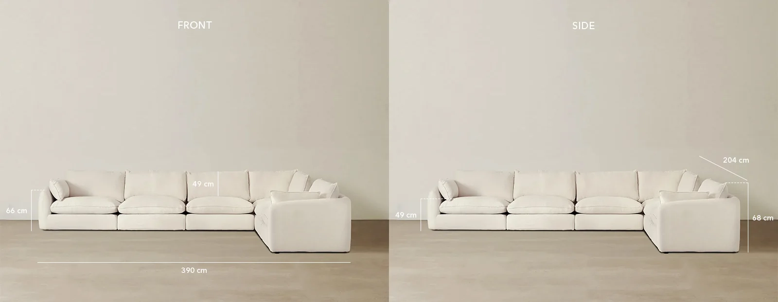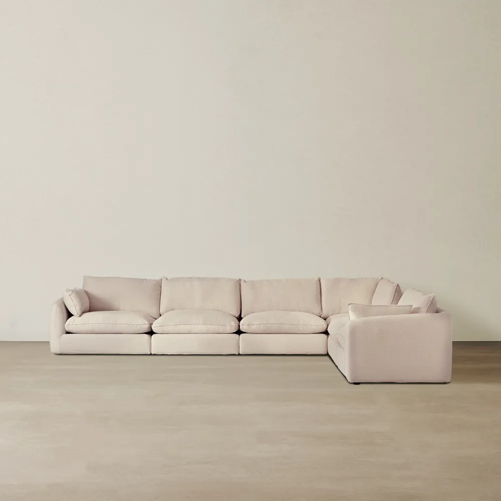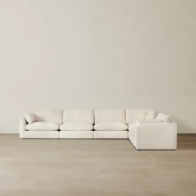 It seats up to five, including a corner section that extends the layout. Each piece connects seamlessly with the rest of the Macie Lite collection for a balanced modular setup.