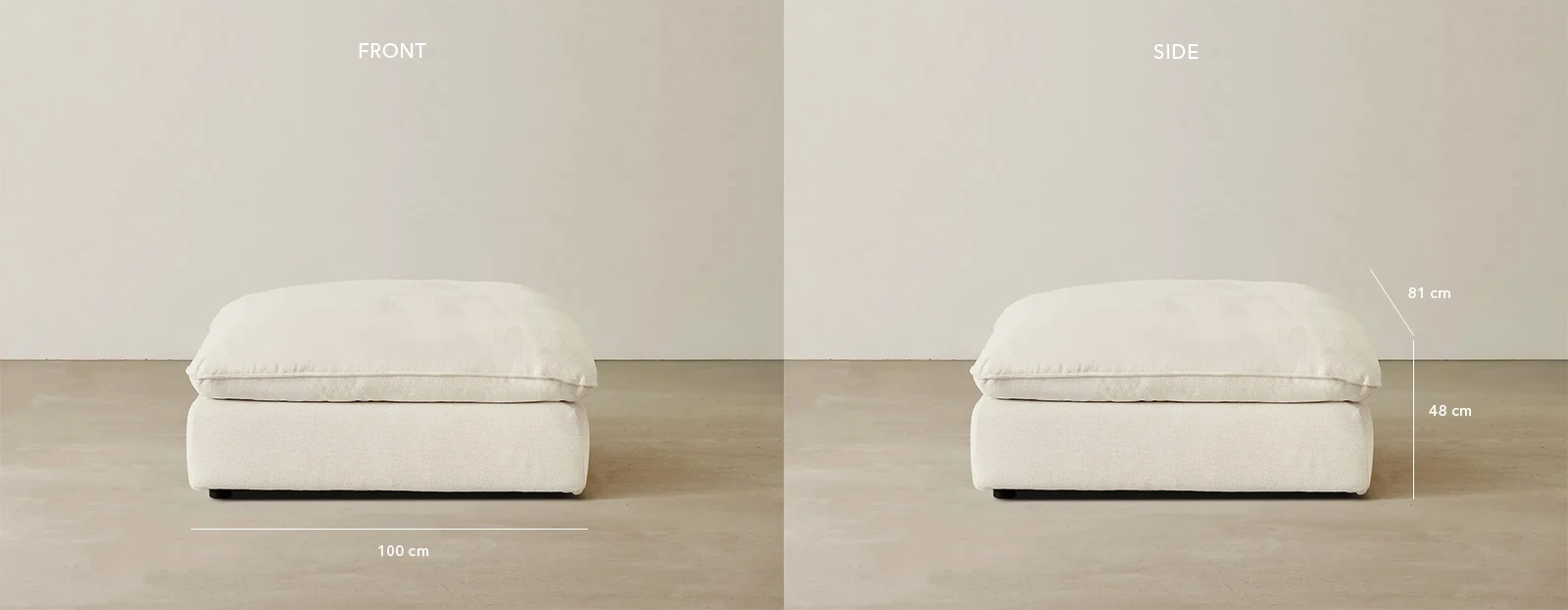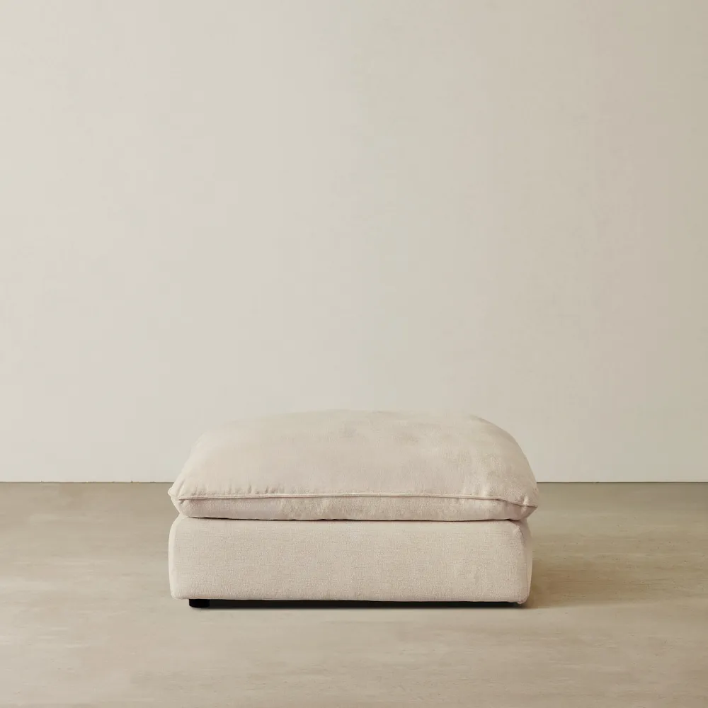 The Macie Lite Ottoman offers a versatile addition to the modular sofa collection. Its soft, low-profile cushion provides a relaxed seating or lounging option.