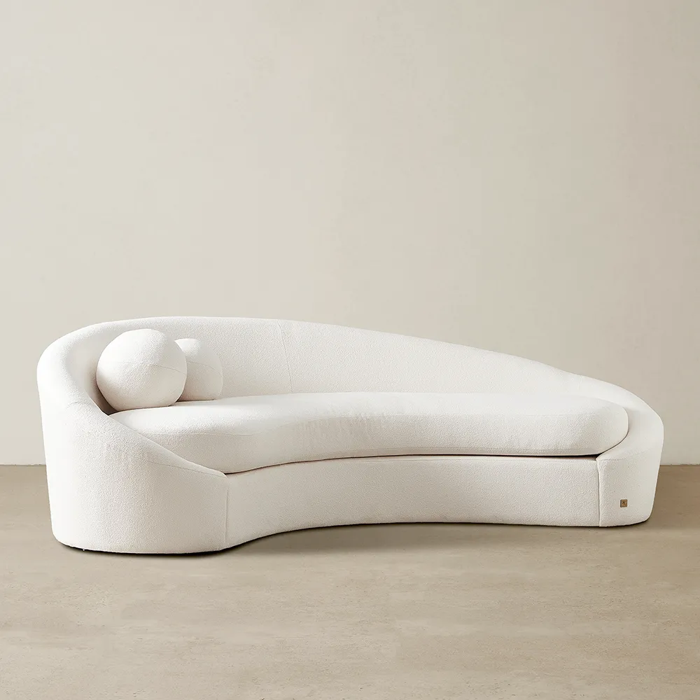 With its graceful, sweeping curves, the Maddie 3-Seater Sofa embodies sleek modern comfort. Draped in a heavenly hue of Cream Turrel fabric, it promises to envelop you in plush luxury.