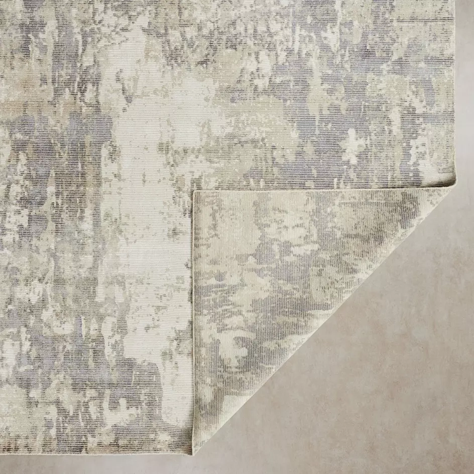 The Maded Floor Rugs pattern presents a modern take on distressed art, with a harmonious mix of soft blue and neutral beige tones.