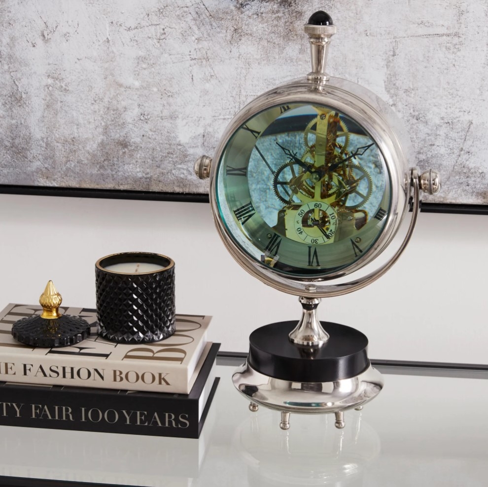 Introducing the Magnified Maritime Silver Table Clock, where the mystique of the ocean meets the precision of timekeeping. Drawing from a nautical-inspired design, this clock effortlessly melds the age-old allure of the seas with modern craftsmanship. At its core, a magnified clock face captures the essence of peering through a submariner's lens, creating an almost surreal underwater effect that amplifies each tick and tock.