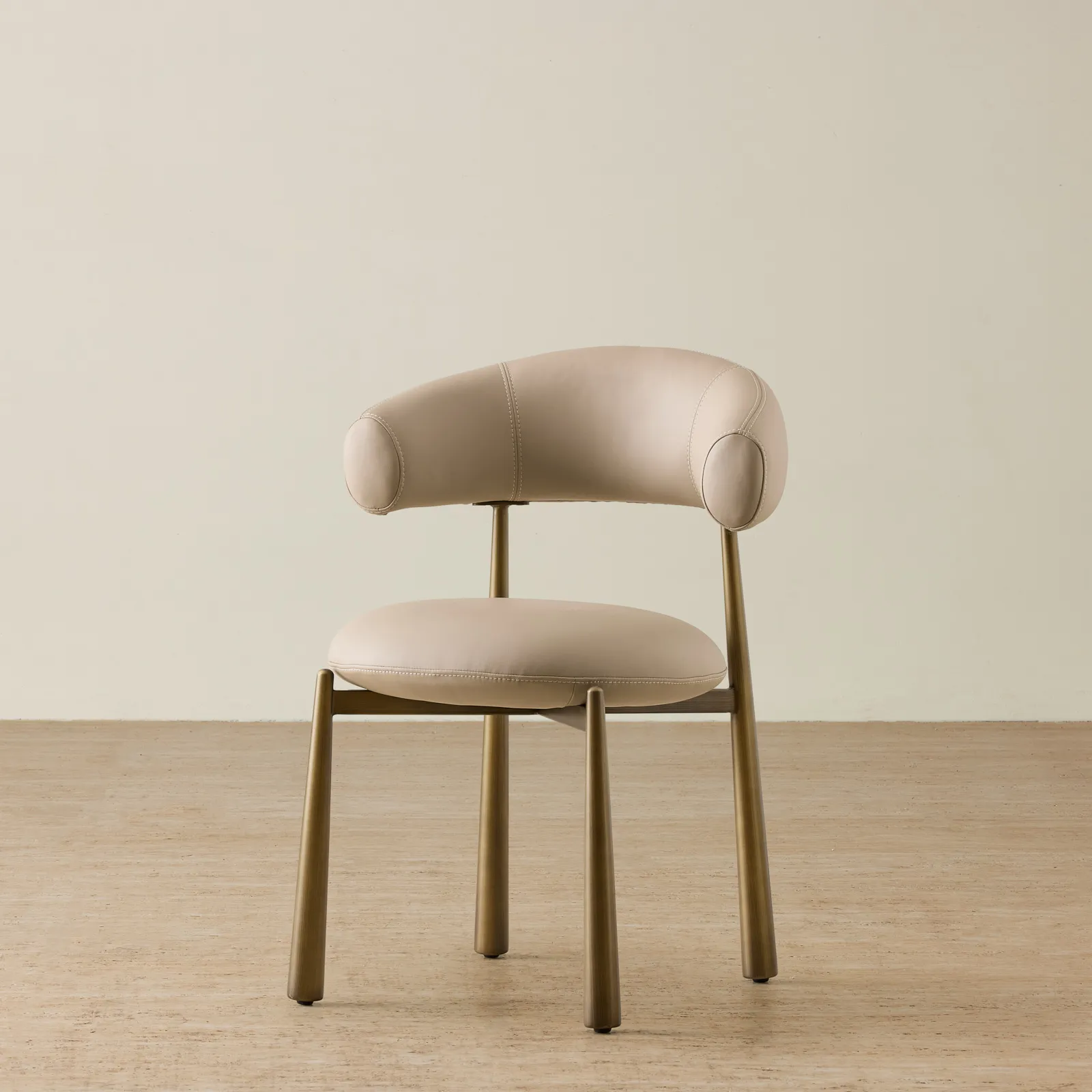 The rounded back section adds elegance, while striking bronze legs provide strength and balance. This combination makes it a stunning choice for any dining space.