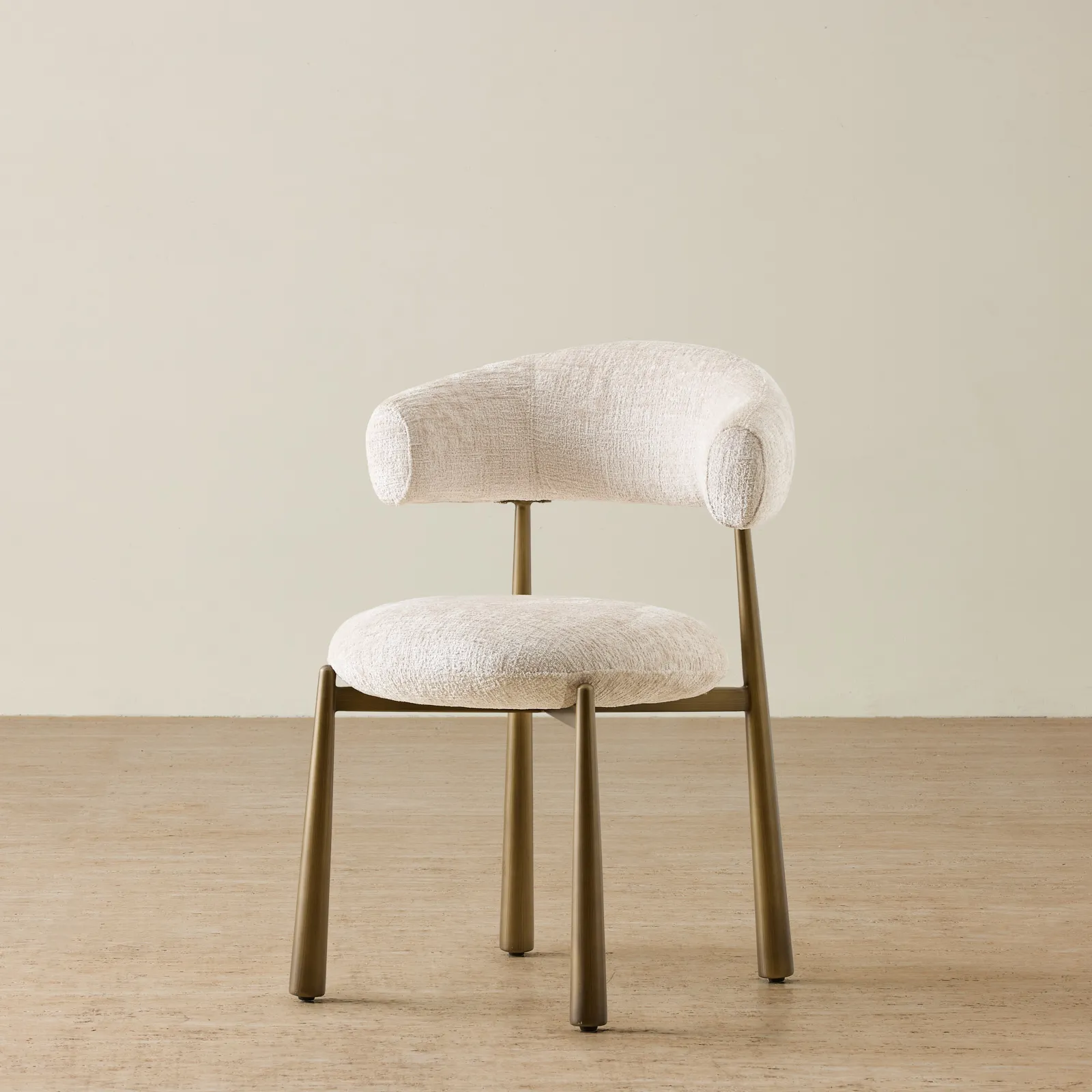 The Maris Royal Cream Fabric Dining Chair is wrapped in soft cream fabric that feels inviting and versatile. Its padded seat and curved backrest promise lasting comfort through every meal or gathering.