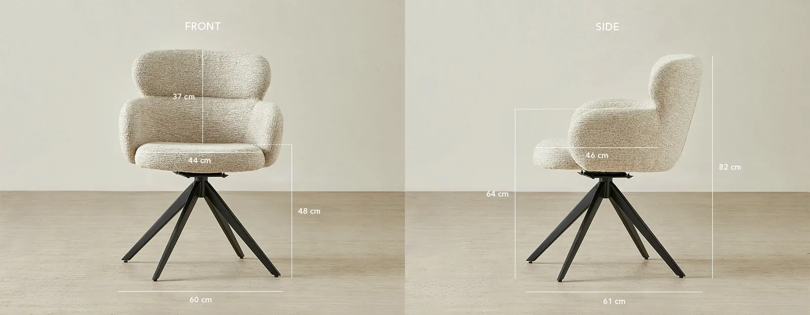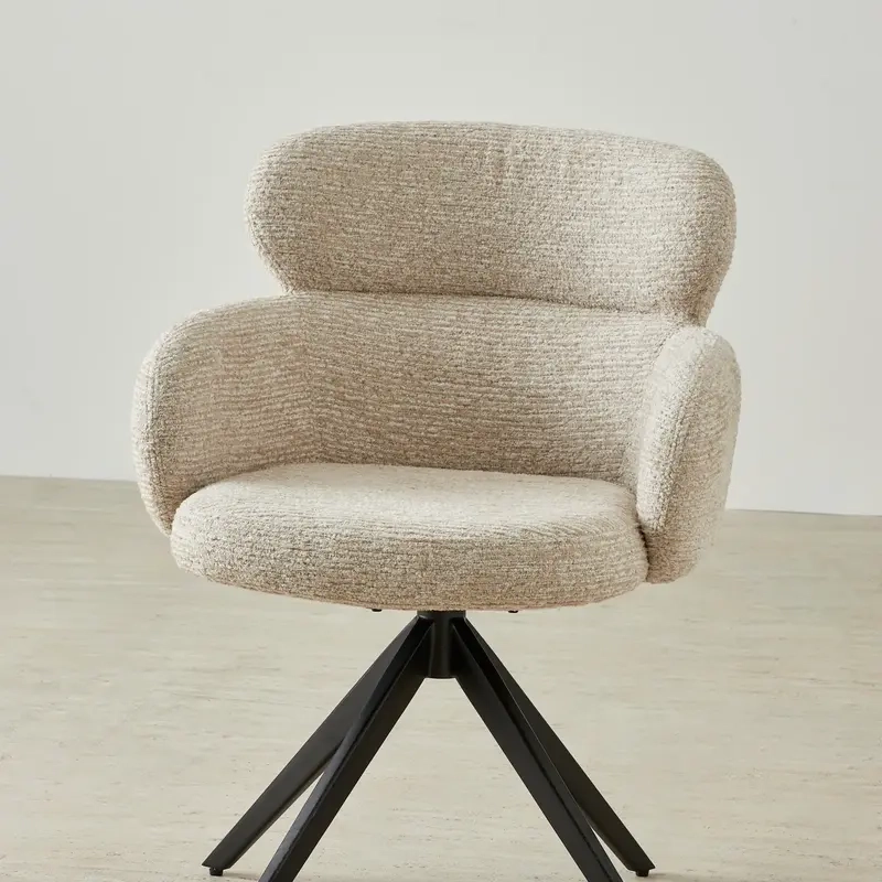 The swivel function adds a dynamic twist, making it easy to turn and engage. Set on a sculptural black base, it’s a chair that feels as good as it looks, perfect for modern dining with a casual edge.
