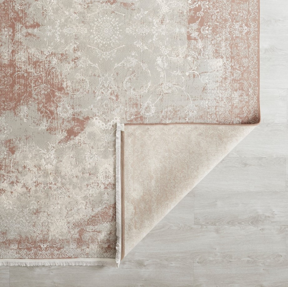 The rug's rich rouge palette is artfully interrupted by subtle splashes of ash, yielding a visual experience that draws the eye and anchors the room with its presence. The Meraki is a testament to skilled craftsmanship, where every woven element showcases a commitment to quality and aesthetic detail. The interplay of rouge and ash hues is not just a color choice but a design statement, creating a piece that radiates warmth and sophistication.