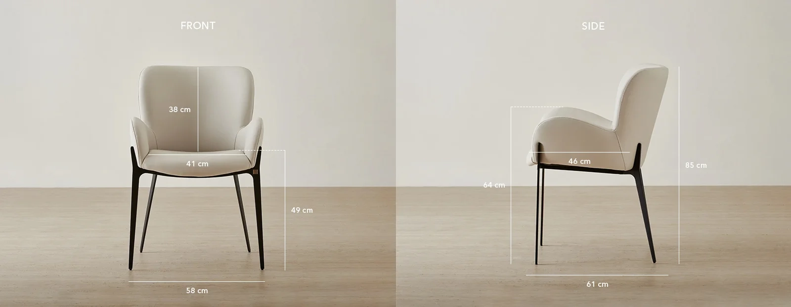 Experience prolonged comfort with its cushioned seat and curved backrest, designed for long meals. The armrests enhance comfort, making Milana a stylish accent piece as well.