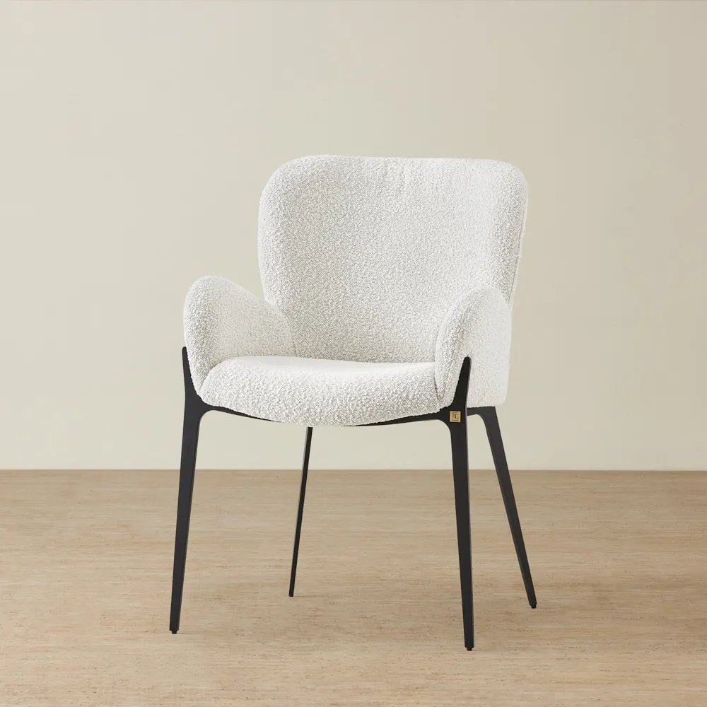 Experience prolonged comfort with its cushioned seat and curved backrest, designed for long meals. The armrests enhance comfort, making Milana a stylish accent piece as well.