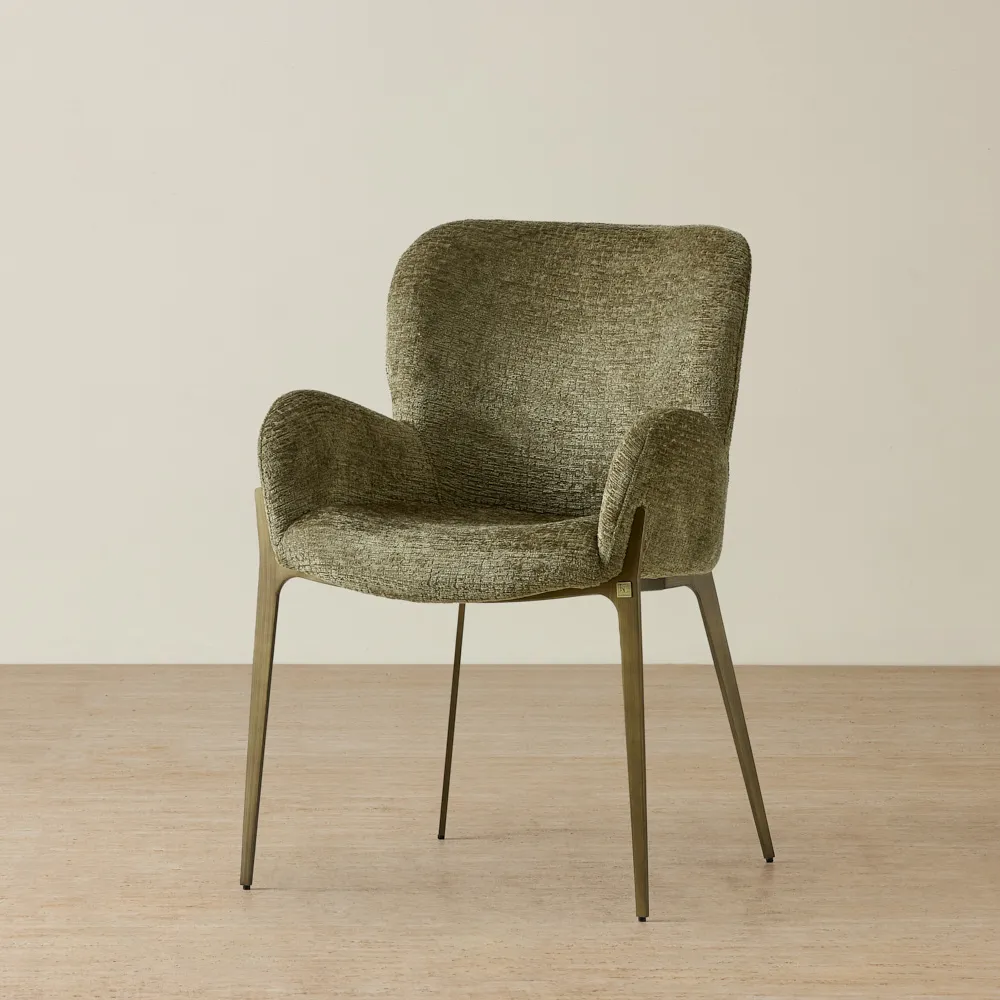 Experience prolonged comfort with its cushioned seat and curved backrest, designed for long meals. The armrests enhance comfort, making Milana a stylish accent piece as well.