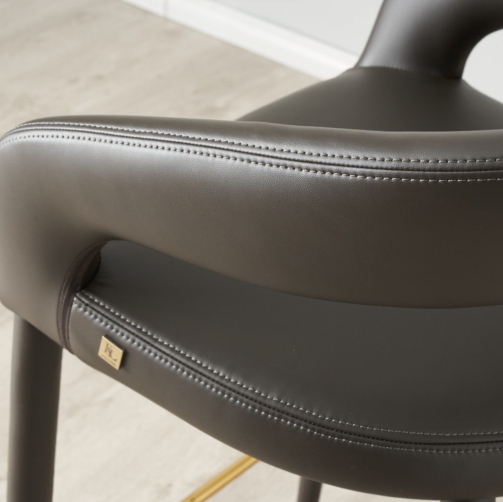 The Moulin Smoke Grey Vegan Leather Bar Stool is a seat of luxury that'll let you enjoy drinks and conversations like never before. High-quality vegan leather in a Smoke Grey shade drapes the entirety of the Moulin with its sophistication. The Moulin features a frame that echoes the tenets of mid-century modern design. The Moulin's graceful curves stem from its striking open-back design.