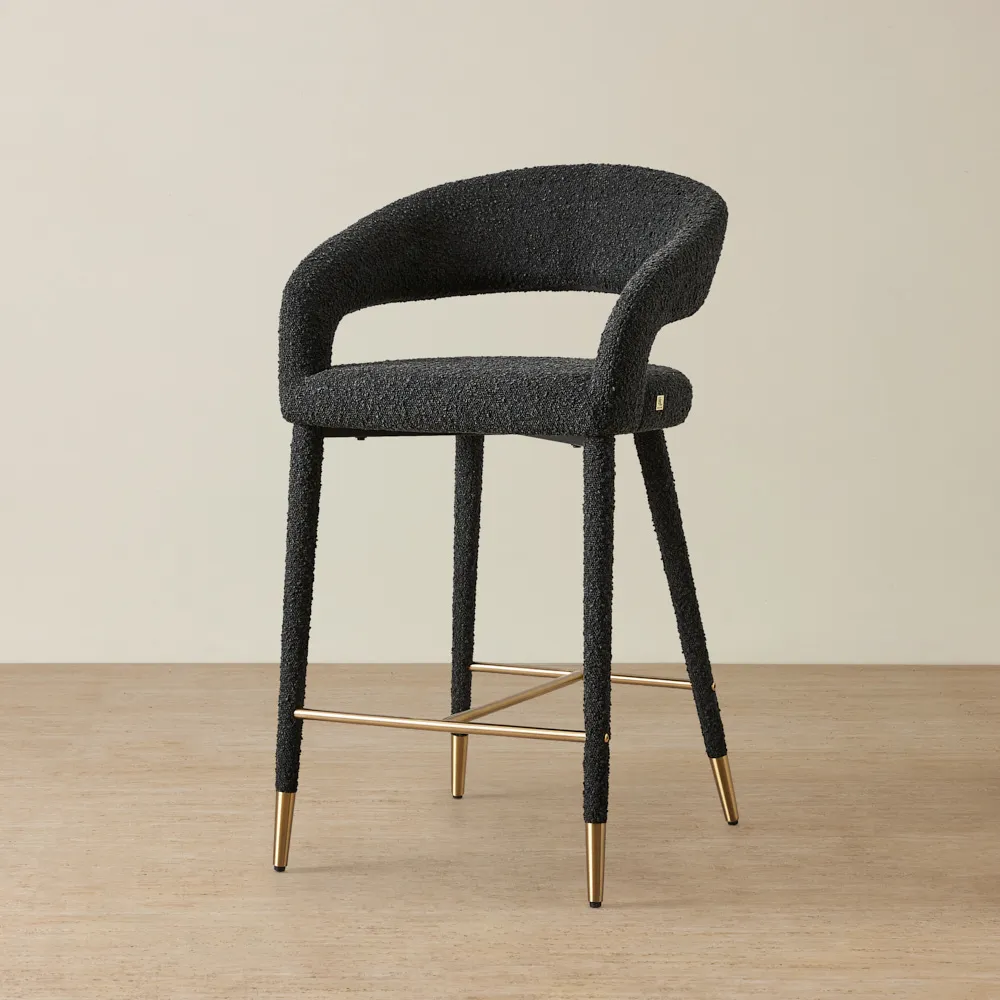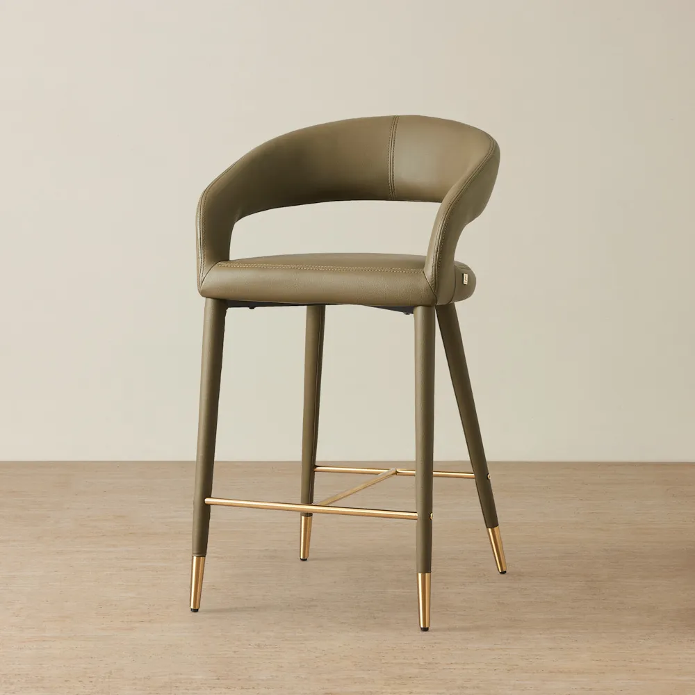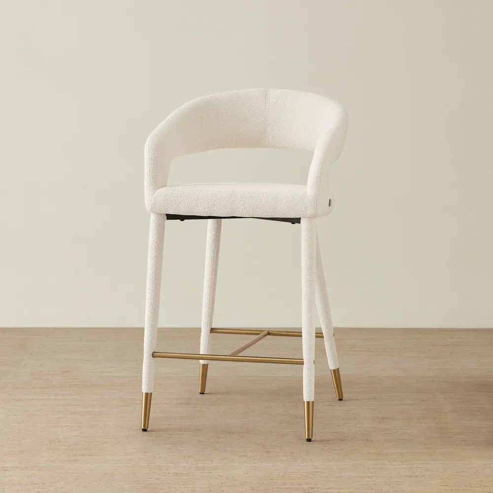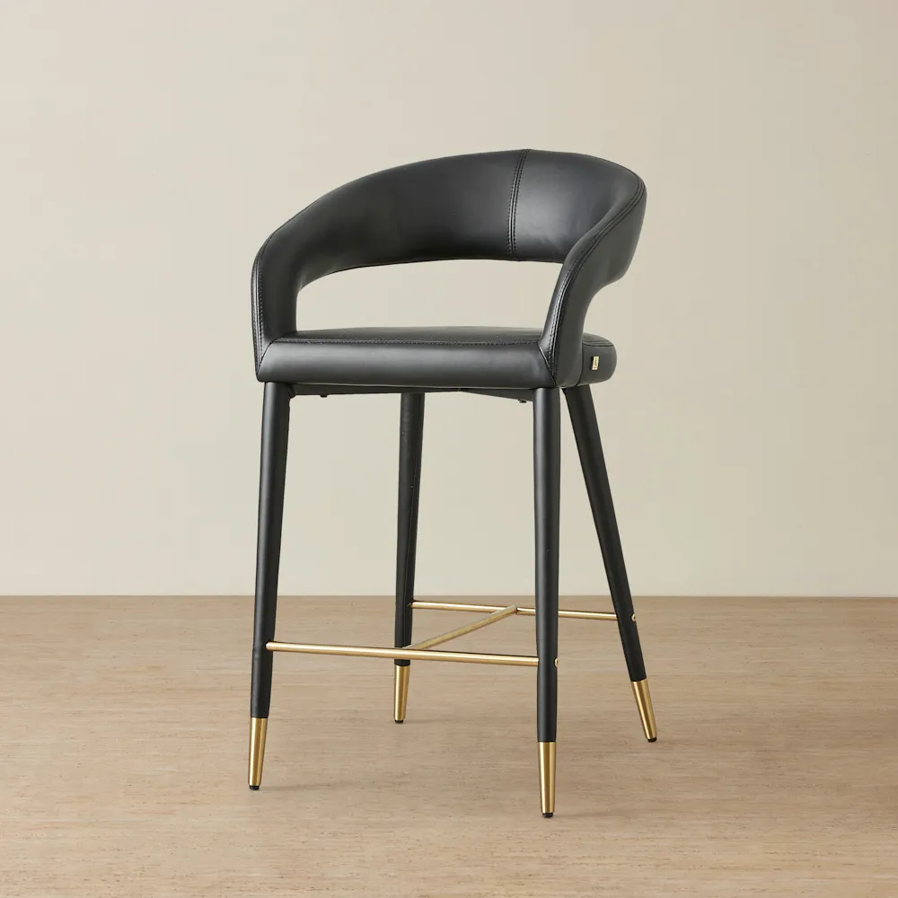 The open back facilitates great posture and reduces stress on the body. The slim backrest and seat are padded with dense foam, offering a comfortable lounging experience. It features a slim golden metal frame that joins at the legs and serves as a helpful footrest. Pair two Moulin counter stools with your gorgeous dining room counter for an exquisite ensemble.