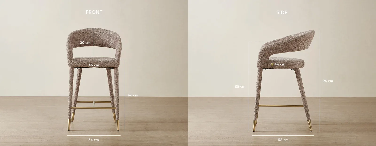 With its sculpted form, the Moulin Counter Stool brings a refined edge to any kitchen or casual dining area. Upholstered in warm taupe woven fabric, it offers a soft, textured finish with a clean, contemporary silhouette.